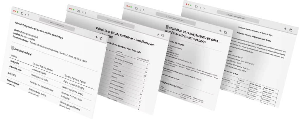 👉 Não é só teoria: você sai com documentos prontos, analisados para o seu caso pela nossa equipe de consultores virtuais especializados em obra.